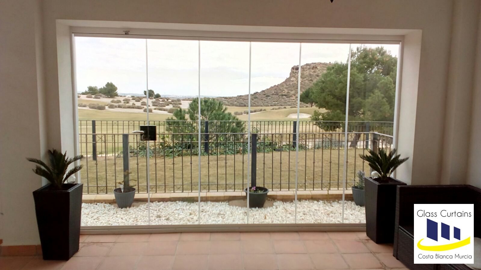 Glass Curtains in Spain. Glass Curtains Costa Blanca Murcia Spain including the Costa Calida, professionally supply and install affordable quality custom made frameless Glass Curtains, Cerramientos de Cristal or Cortina Cristal designed to fit snuggly into all areas of your balcony and terrace. Elegant frameless Glass Curtains in Spain will greatly enhance your property providing greater flexibility by increasing the options available to your day to day living space.