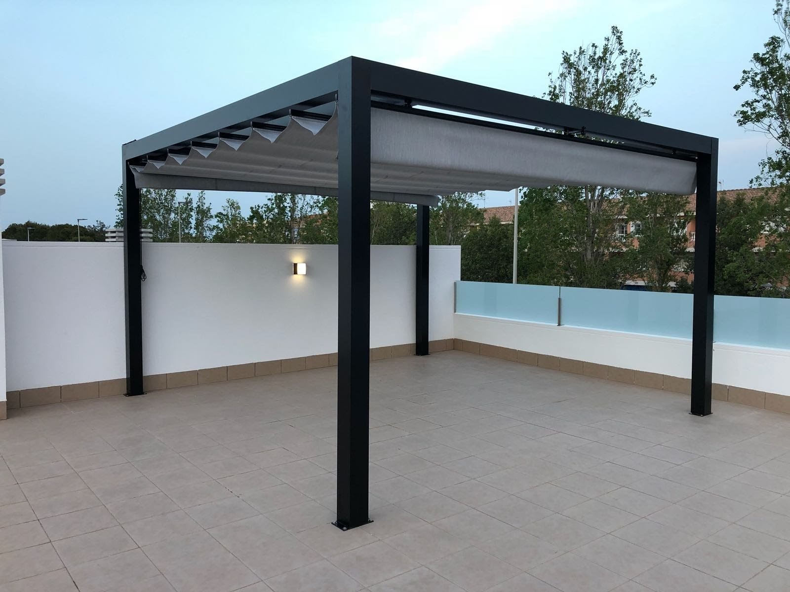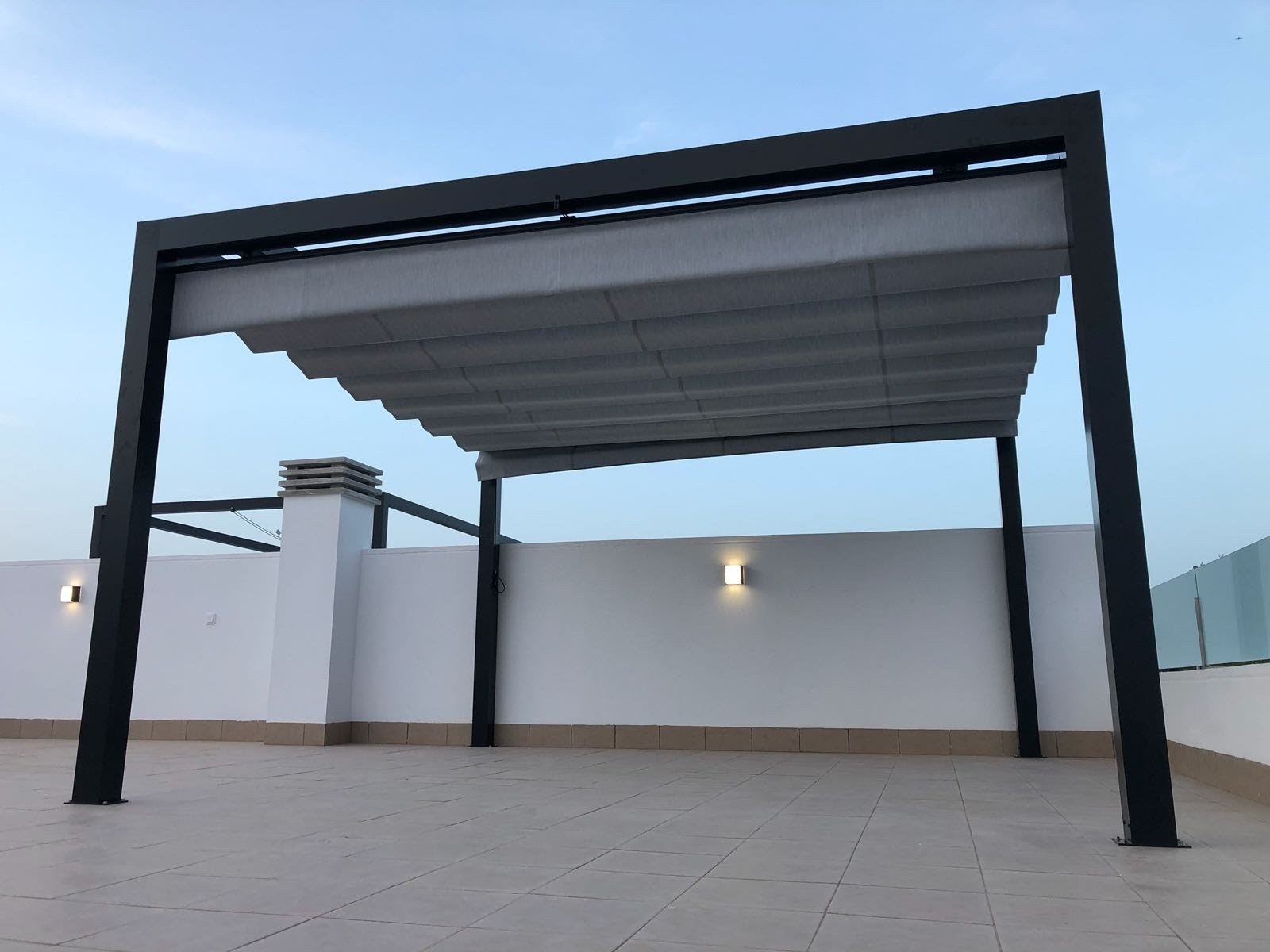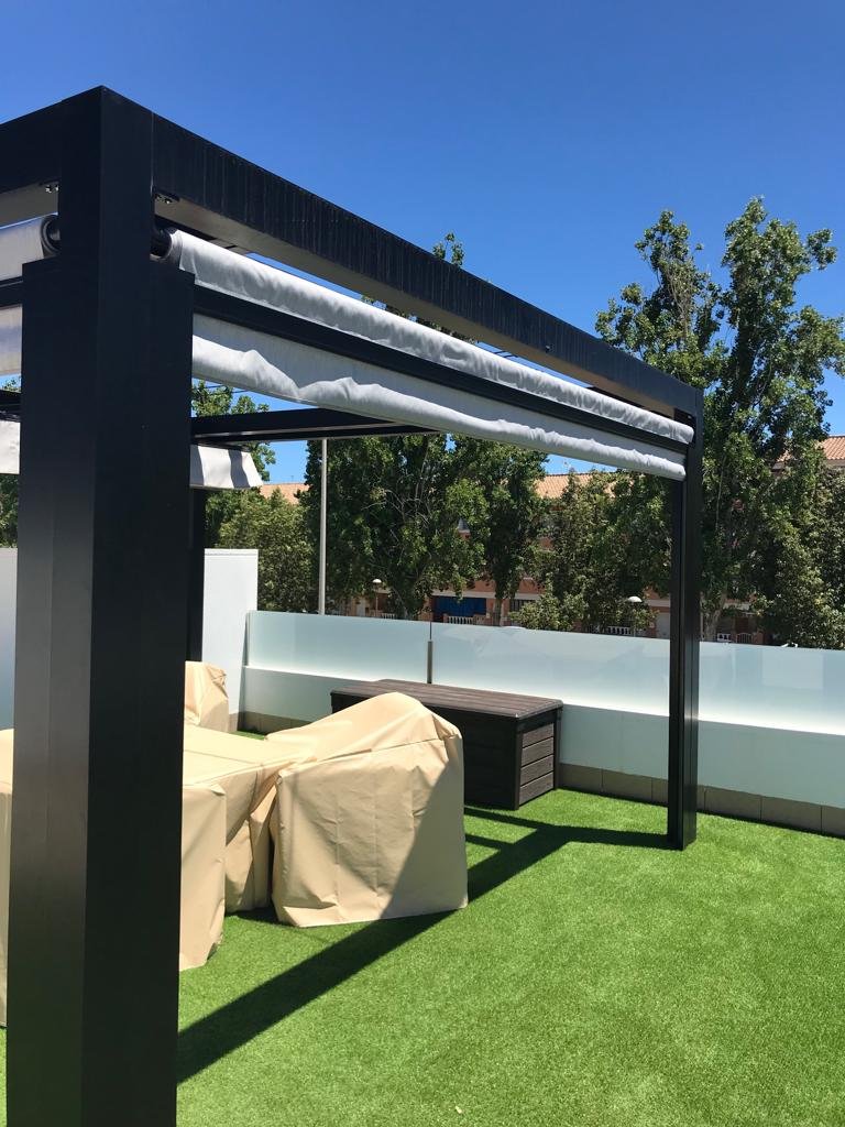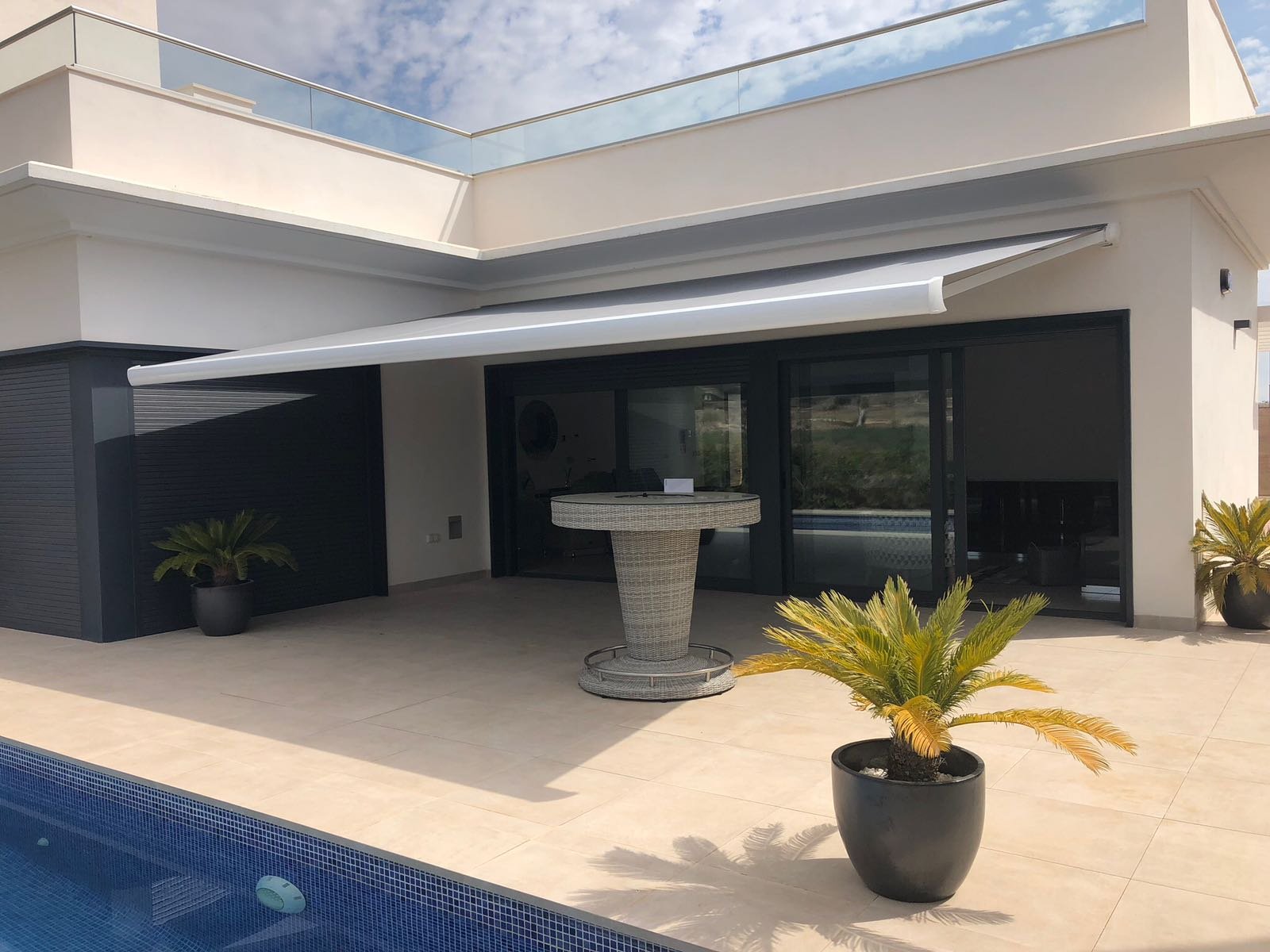 Sun protection including toldos, sun shades, sun awnings, sun canopies, shade sails, pergolas & bioclimatic pergolas come in all shapes, sizes, fabrics and colours. Custom made toldos, sun shades, sun awnings, sun canopies, shade sails, pergolas & bioclimatic pergolas in Murcia Spain are designed to fit into all areas of your property. Exposure to the sun for prolonged periods of time is not healthy or comfortable, so having somewhere shaded and protected from the hot sun to sit in comfort is an important factor to consider.