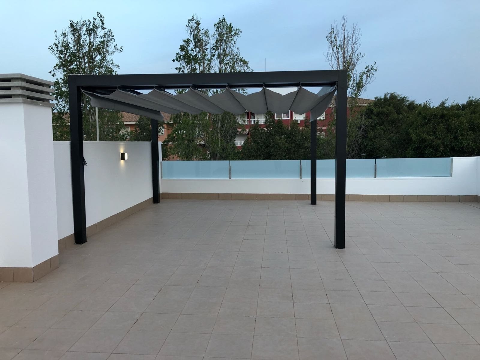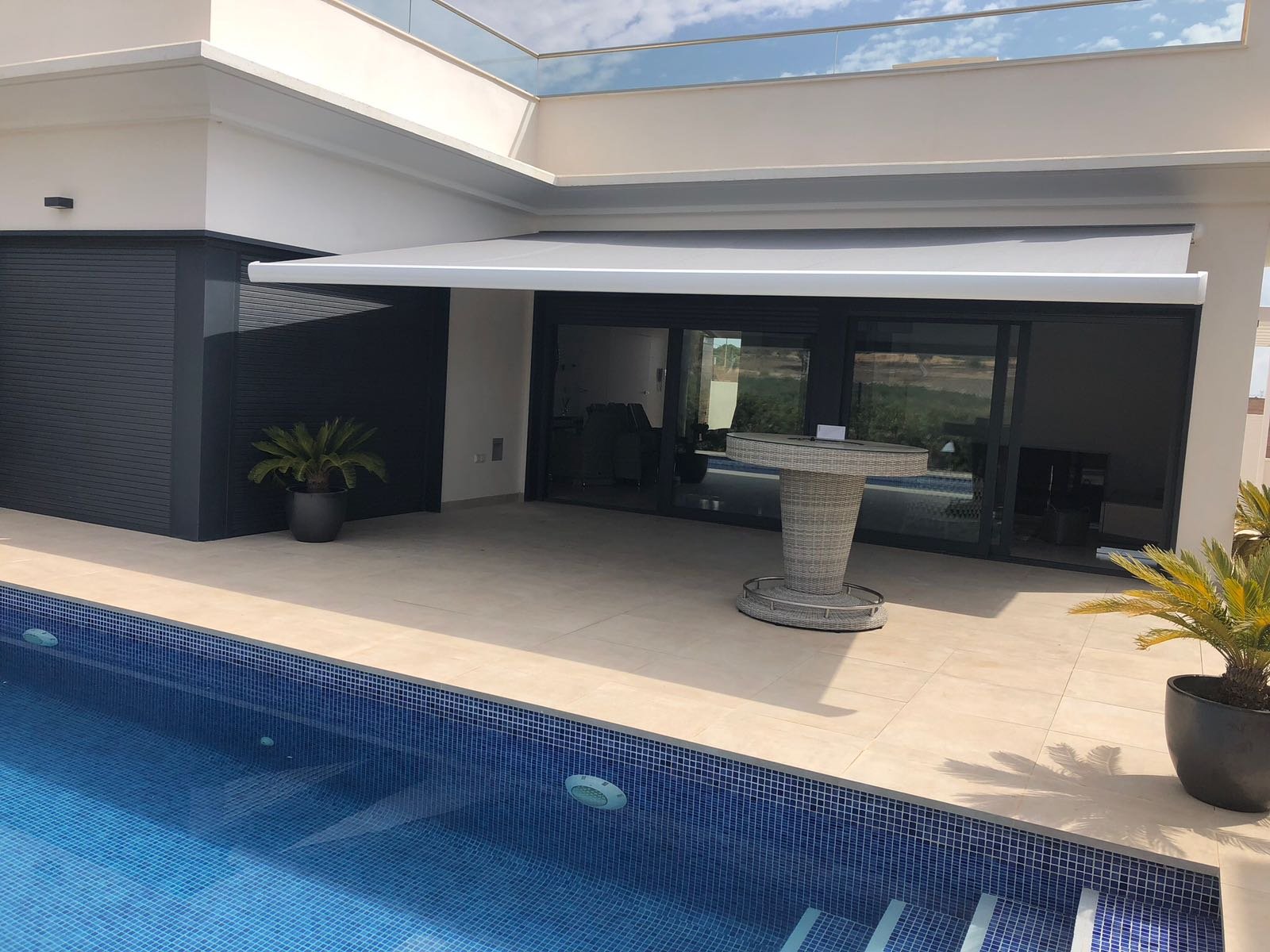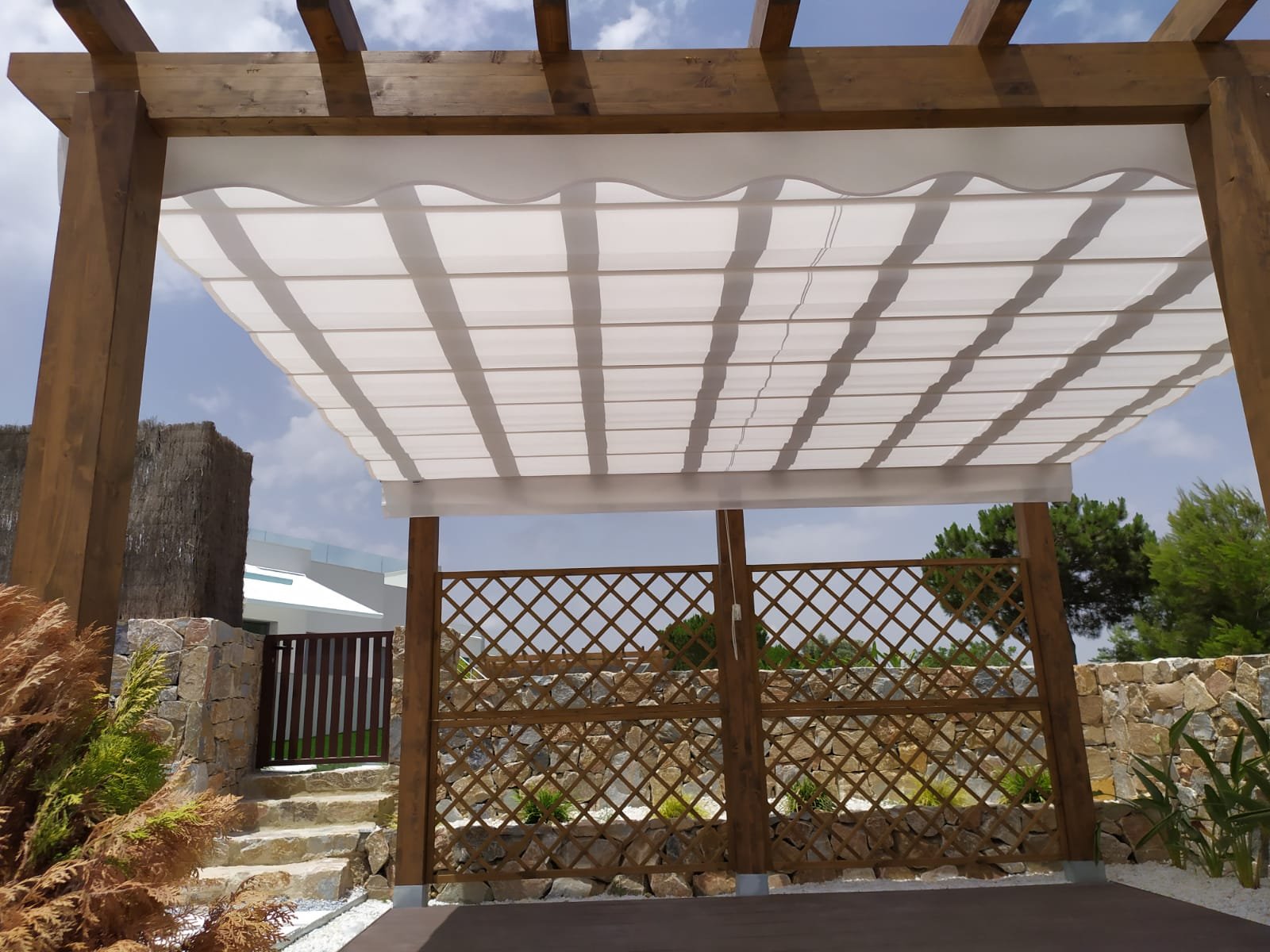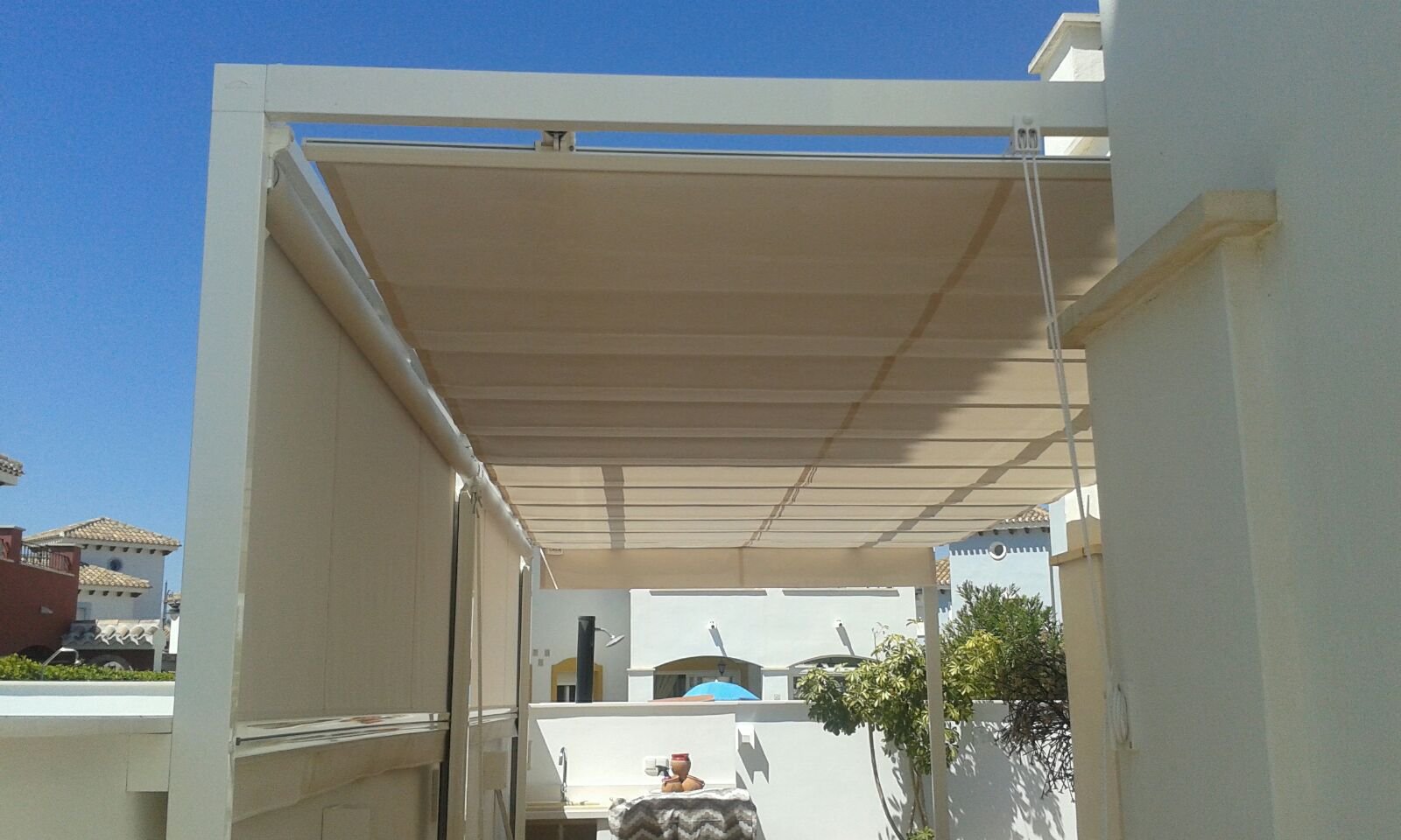 Sun protection including toldos, sun shades, sun awnings, sun canopies, shade sails, pergolas & bioclimatic pergolas come in all shapes, sizes, fabrics and colours. Custom made toldos, sun shades, sun awnings, sun canopies, shade sails, pergolas & bioclimatic pergolas in Murcia Spain are designed to fit into all areas of your property. Exposure to the sun for prolonged periods of time is not healthy or comfortable, so having somewhere shaded and protected from the hot sun to sit in comfort is an important factor to consider.
