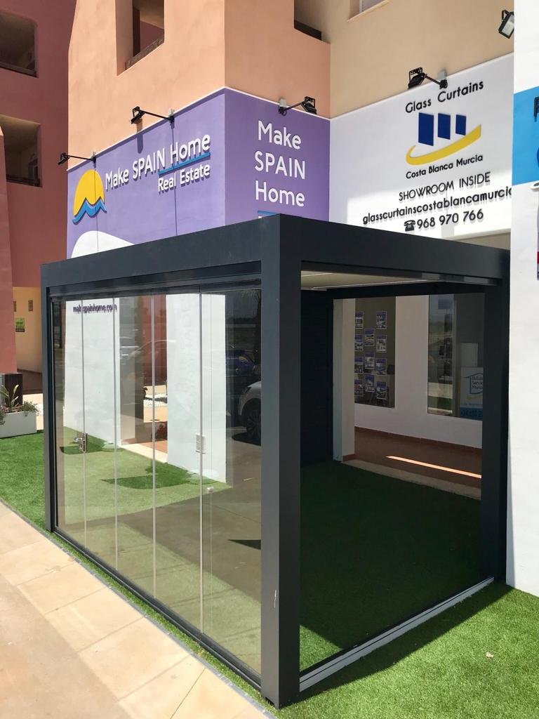 In order to compliment our quality glass curtains, Glass Curtains Costa Blanca Murcia offer a large range of quality made to measure toldos, sun shades, sun awnings, sun canopies, pergolas & bioclimatic pergolas that are all professionally fitted and designed to protect you and your property from the harsh elements of the Spanish sun.